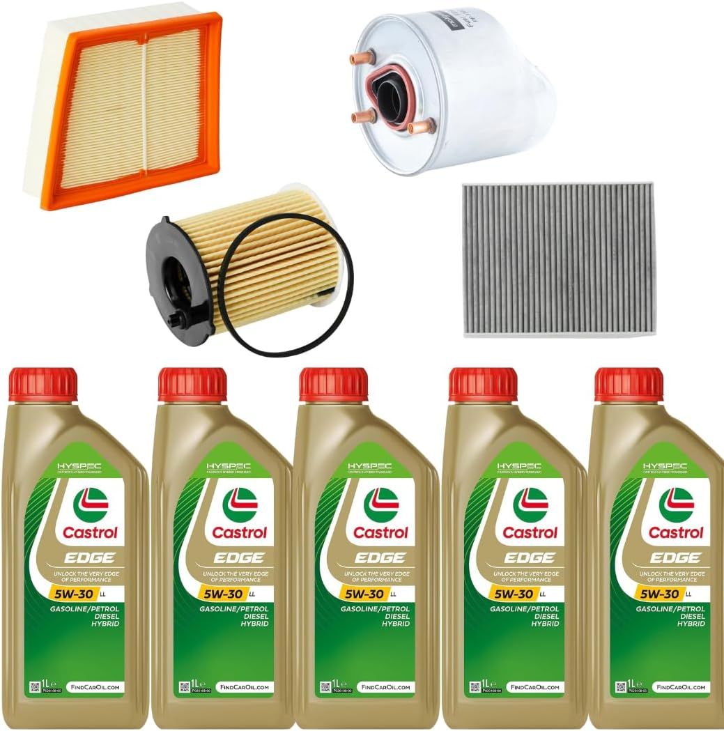 CORMAR Complete Service Kit Filters + Castrol 5W30 Oil Compatible with Ford Fiesta VI 1.4 1.5 TDCi from 2010