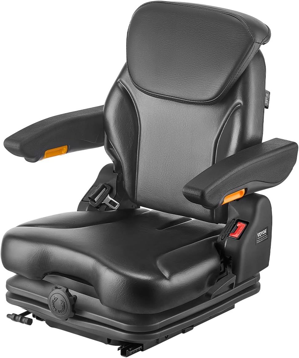 VEVOR Universal Forklift Seat with Adjustable Backrest, Armrest, Headrest and Safety Belt, Safe Folding Tractor Seat with Micro Switch for Lawnmowers