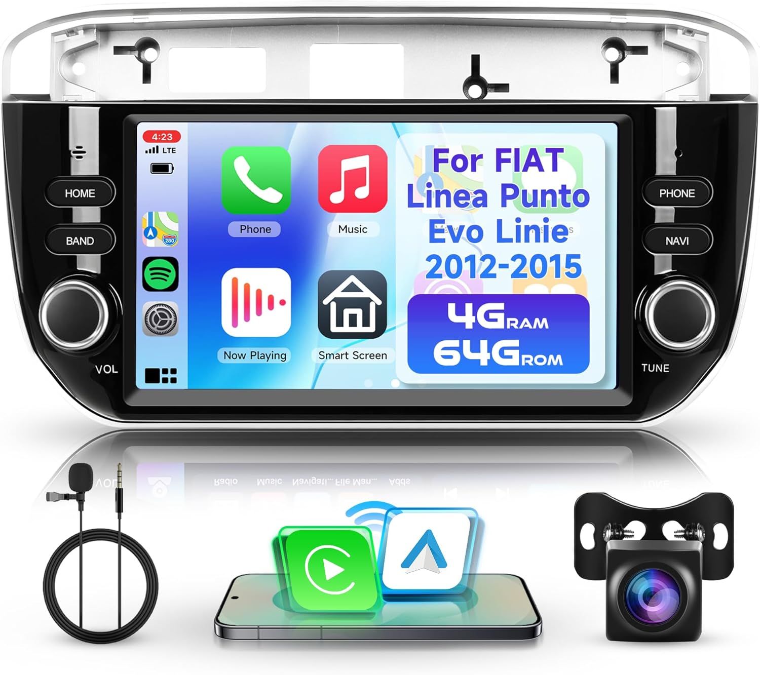 Wireless Carplay & Wireless Android Auto & Mirror Link] The car stereo for FIAT Linea 2012 is able to tightly integrate the user's IOS/Android mobile phone and player, connect to iPhone and Android and access mobile phone book, mail, notifications, map navigation, music, videos and other information, and realize voice control. The stereo supports Android/IOS Mirror Link: once connected, it can project the contents of the phone, so that the FIAT Linea 2013 car radio displays exactly what your phone displays, and then you can enjoy maps, movies and more!