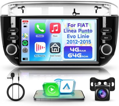[4+64G 7 inch Android Touchscreen Car Radio for FIAT Linea Punto Evo] Compatible Vehicles: for FIAT Linea Punto Evo 2012 2013 2014 2015. Designed and contoured to match factory dashboard, factory style texture design, 7'' HD screen automatic radio. 4G RAM + 64G ROM memory, screen resolution: 1024*600, full capacity touch screen for easy use, well designed user interface for car only. Split Screen Support